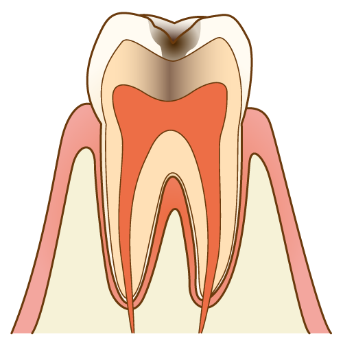茶色くエナメル質が溶け始めて、まだ浅い状態。